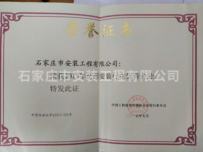 2015年全國安裝行業(yè)優(yōu)秀企業(yè)